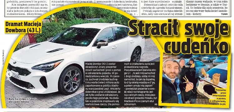 Prezenterowi w okolicach kortów legii warszawa skradziono samochód. Sprawę zgłosił na policję i teraz. Teraz apeluje o pomoc w ujęciu sprawców. Dowbor zaapelował o pomoc na instagramie. Jun 15, 2021 · maciej dowbor został okradziony.